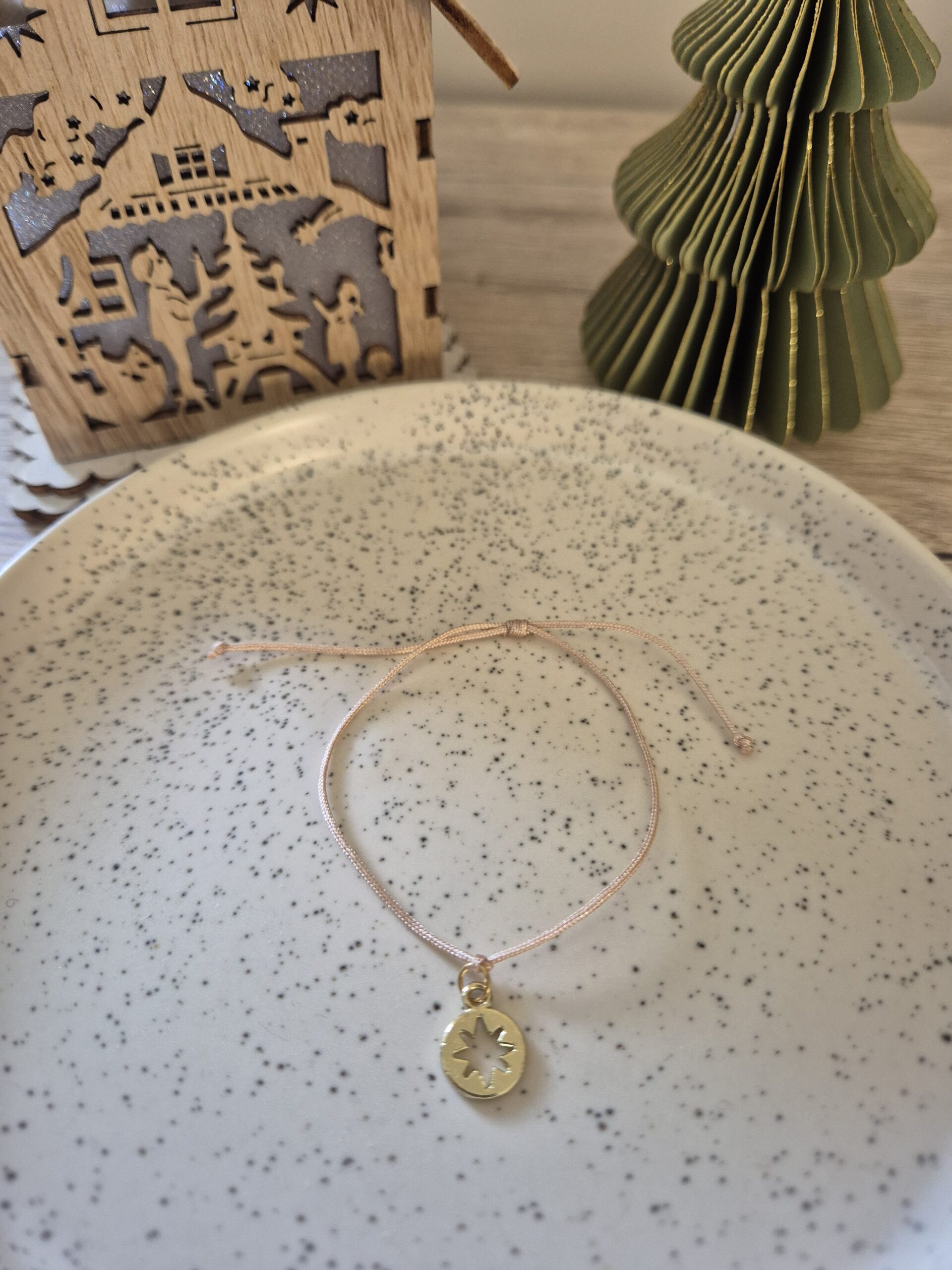 Ce bracelet est composé d’un fil de jade et d’une breloque étoile.
