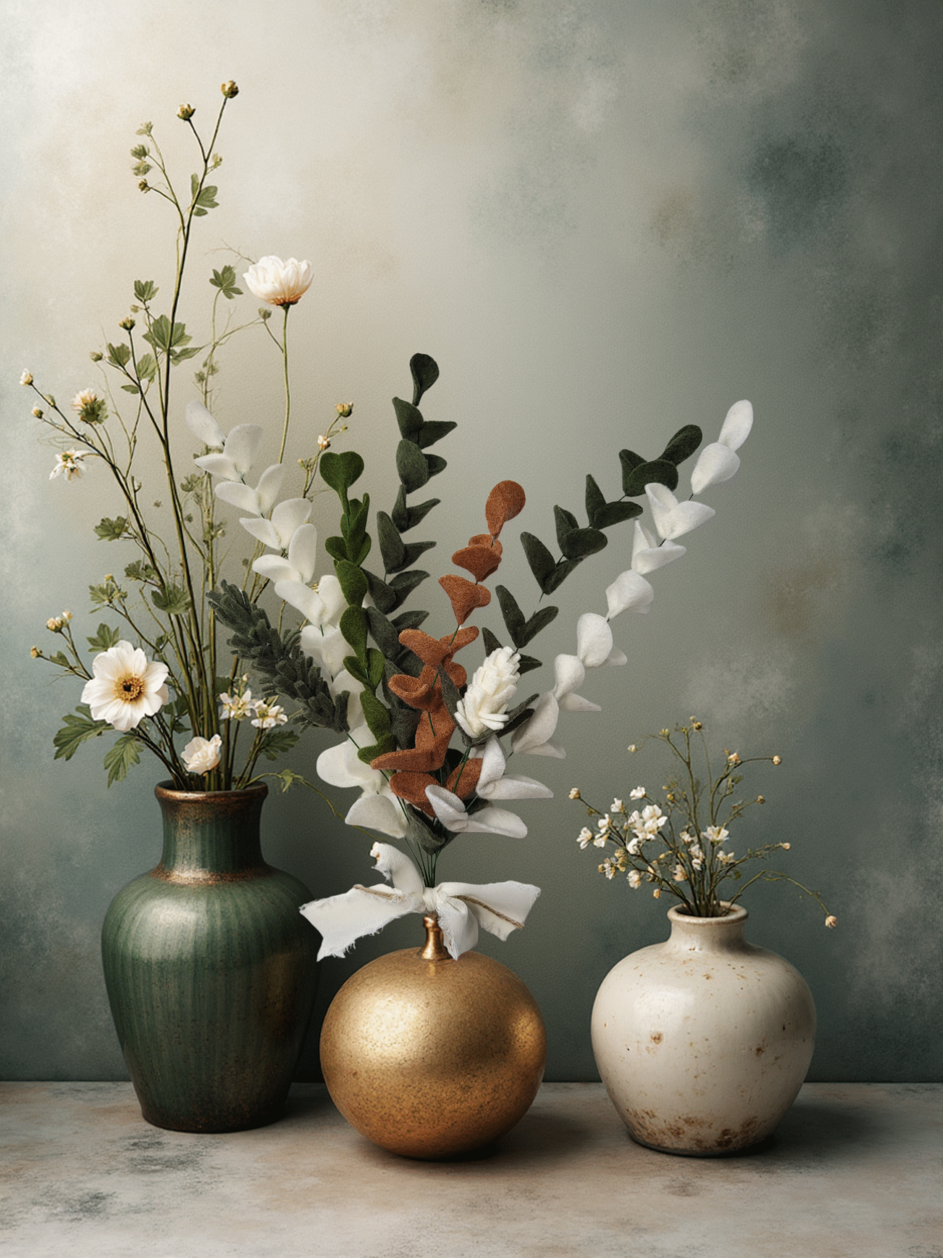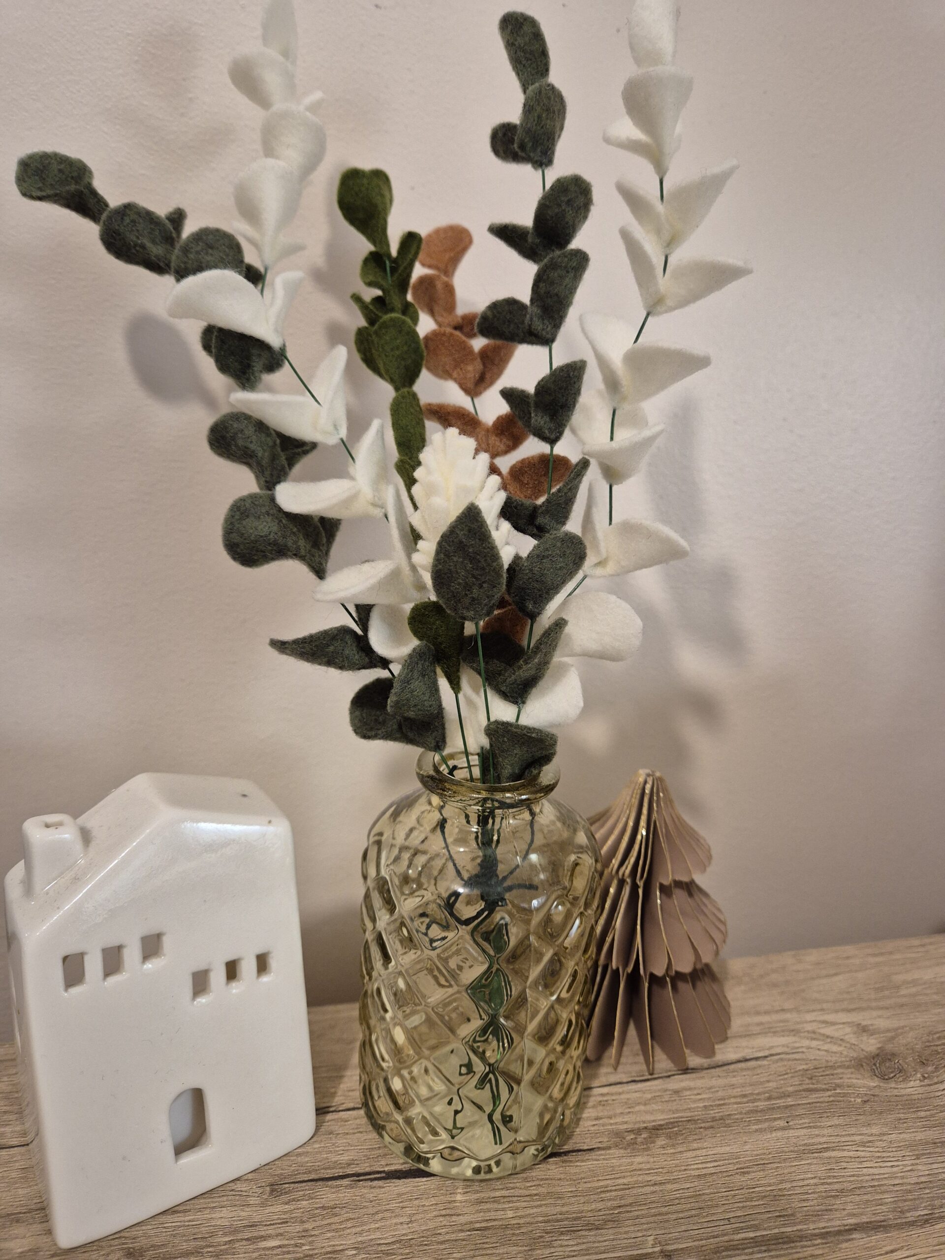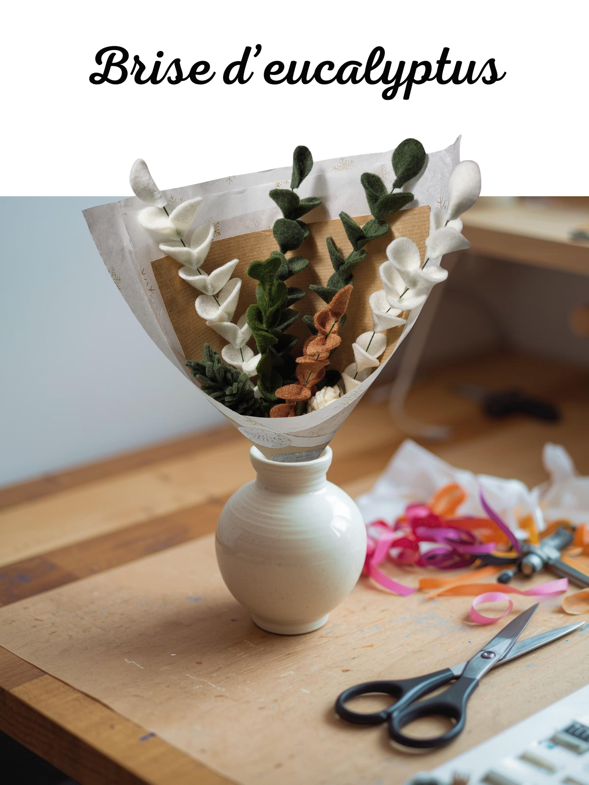 Ajoutez une note végétale intemporelle à votre décoration avec ce bouquet en feutrine eucalyptus et sapin : une création unique qui allie design, poésie et durabilité.