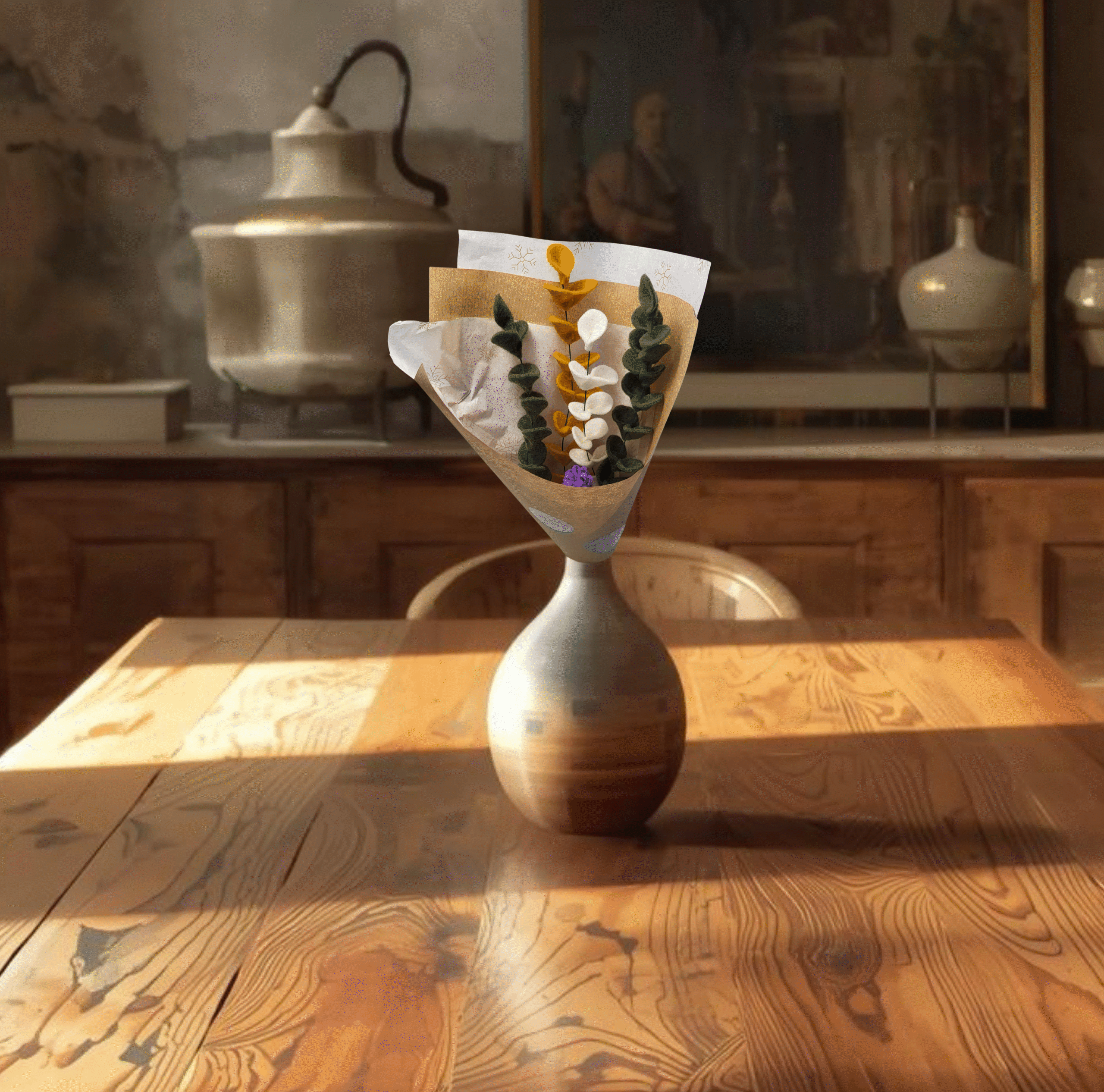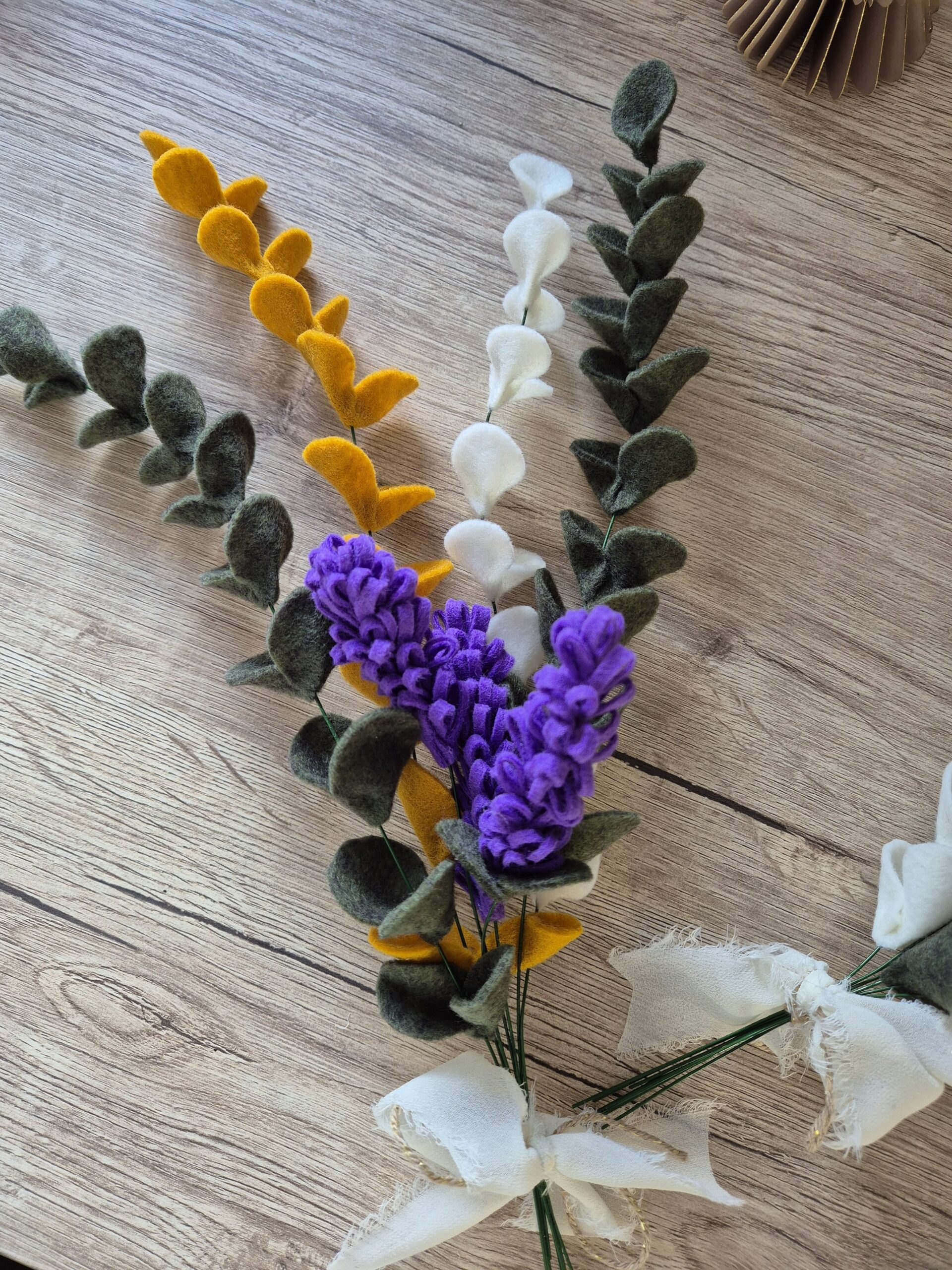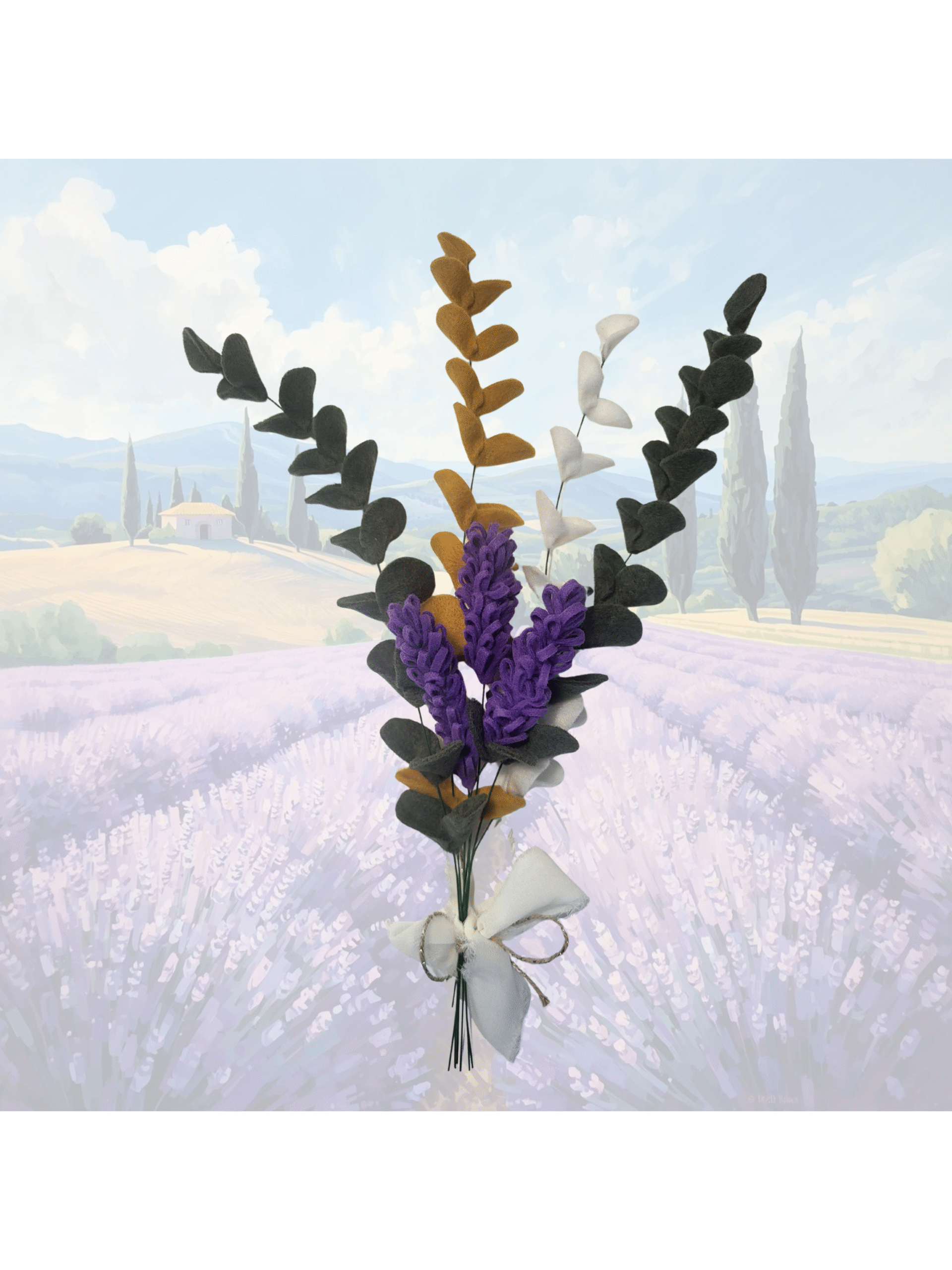 Laissez-vous séduire par Murmures de Provence, un bouquet minimaliste en feutrine qui capture toute la douceur des paysages provençaux. Composé de 7 tiges artisanales d’eucalyptus et de lavande, ce bouquet mêle délicatesse, sobriété et élégance naturelle.